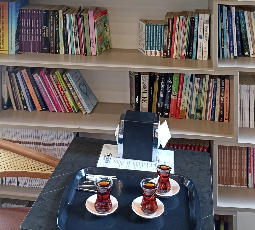 siparişlerini beklerken ya da kahvelerini yudumlarken raflardan bir kitap alıp